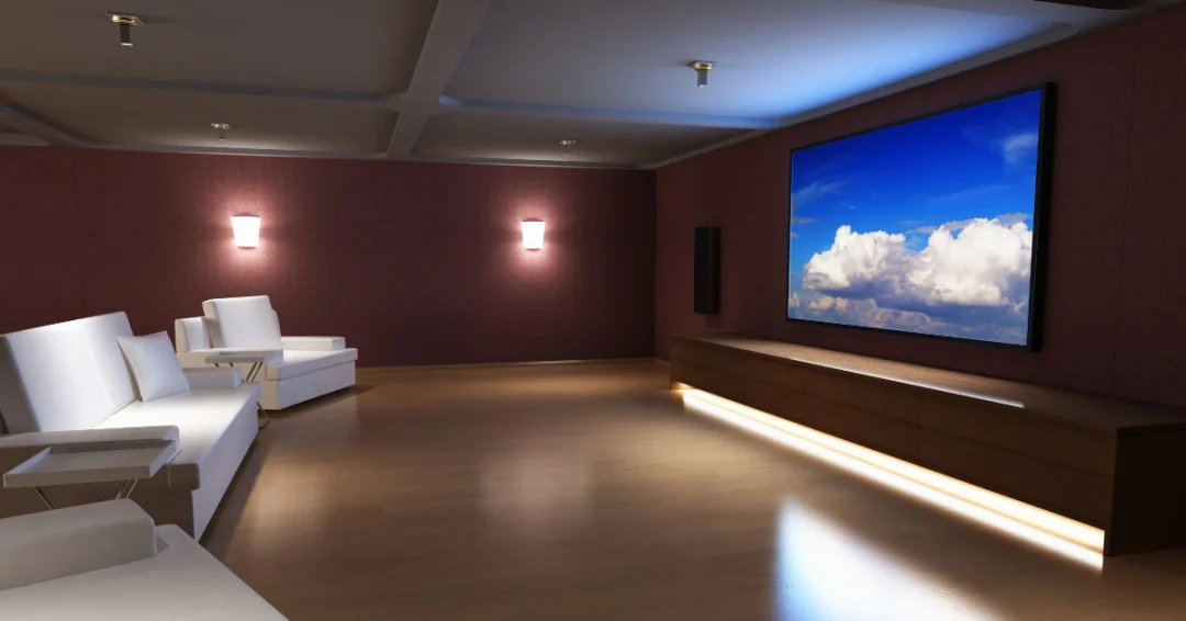 Large-format LED display panels – the technology that has displaced projection in many high-end residential installations over the past several years – eliminate the throw distance constraint entirely. A panel sits directly against the front wall, simplifying spatial planning. The trade-off is that even large residential panels top out at sizes projection can exceed, and the visual experience of a 120-inch or larger image in a properly darkened room remains distinct from any panel currently available at residential scale.