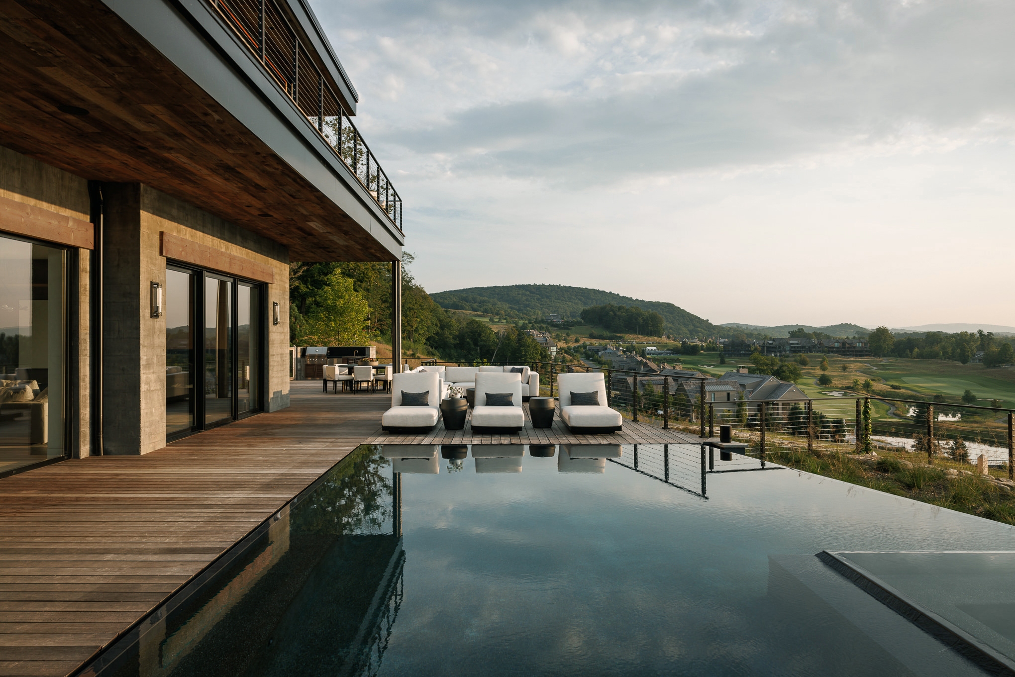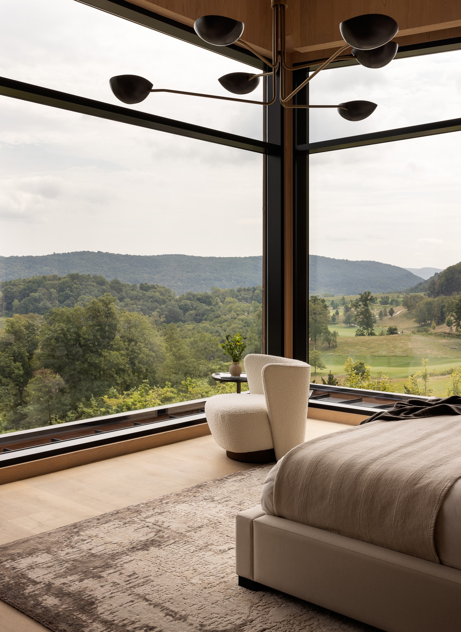 Alpine is a home shaped by its environment—both sculpted by the land and seamlessly woven into it. Perched in the Hudson Valley, its design embraces the rugged terrain, floating above the forest floor to preserve the landscape. Expanses of glass dissolve boundaries between interior and exterior, framing panoramic valley views while allowing light to shift and evolve throughout the day.